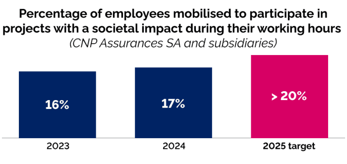 We aim to have 20% of employees carry out actions of general interest during their working hours by 2025 (Group).