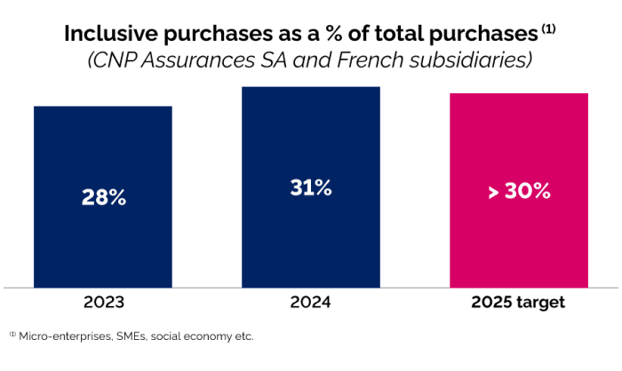 By the end of 2025, we aim to place 30% of our purchases with inclusive companies: VSEs and SMEs, protected and adapted sectors, social and solidarity economy, priority neighbourhoods, and territories (France).