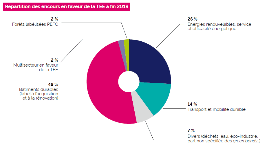 CNP Assurances a annoncé en 2019 sa volonté de multiplier par deux ses encours en investissements verts – forêts, green bonds, immeubles à haute performance énergétique, infrastructures vertes comme des projets d’énergie renouvelable et des moyens de transport et de mobilité à faibles émissions de CO2- pour atteindre 20 Md€ d’ici fin 2023, contre 10,4 Md€ à fin 2018. A fin 2019, ces investissements verts atteignent 14,4 Md€ : 49 % concernent les bâtiments durables, 26 % les énergies renouvelables et l’efficacité énergétique, et 14 % le transport et la mobilité durable.
