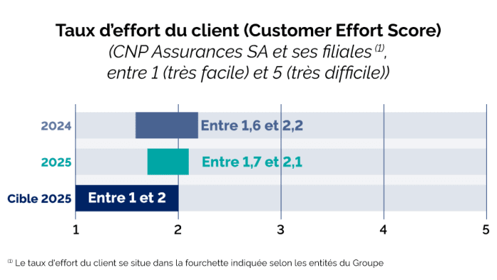 A la fin 2025, notre objectif était d’atteindre un taux d’effort du client inférieur à 2 (sur 5) sur son parcours de bout en bout (périmètre France et international).